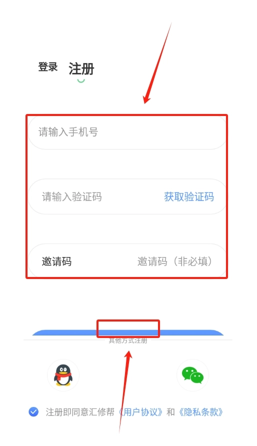 要是还没有账号,就去注册页面填写手机号和验证码,再按照页面提示一步步完成账号的注册流程。