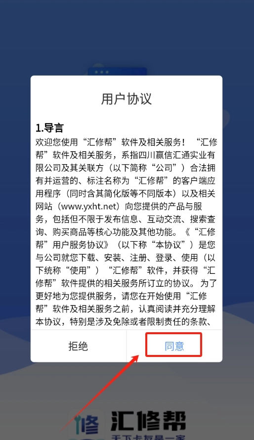 打开软件后,页面会弹出软件协议,仔细阅读完毕后点击“同意”选项。