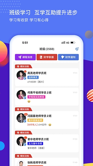 3、即时通信:即便大家在室内空间上无法共处一地,但只要怀有同样的学习培训意愿,“中财学堂”便会为各位学生搭建一个交流平台,实现即时沟通。