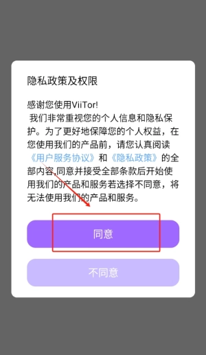 初次打开应用时,需点击同意相关条款的按钮进入主界面,接着完成基础配置步骤,以便为之后的使用流程打好基础。