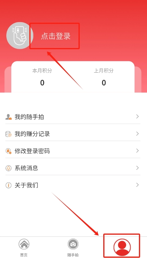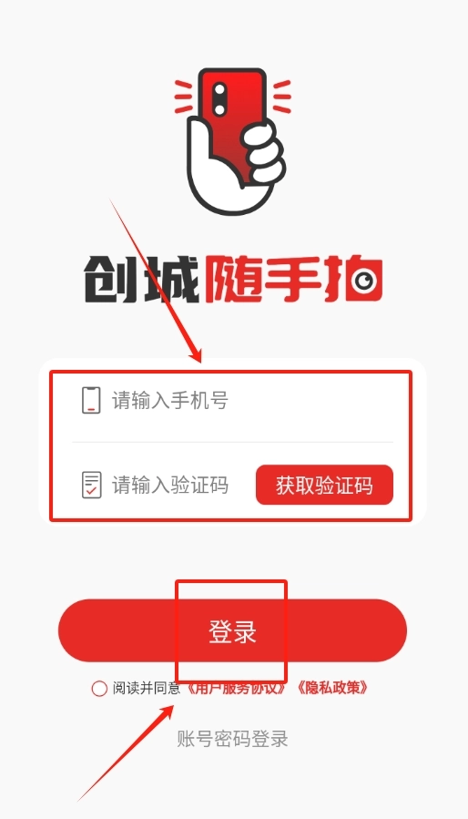 打开创城随手拍软件后,在界面下方找到“我的”选项卡,点击进入个人页面,即可看到登录入口。