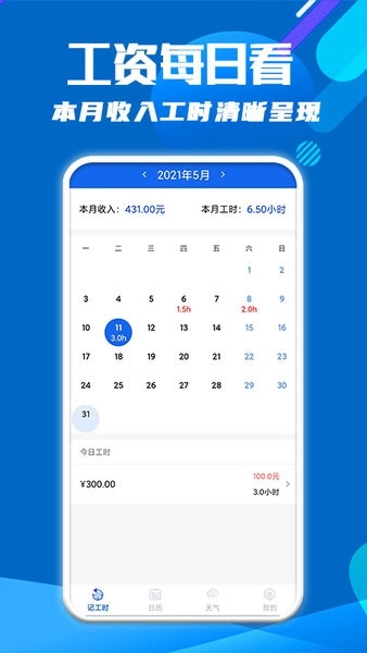 快速录入工作时长,计算工作收入,方便有快捷。