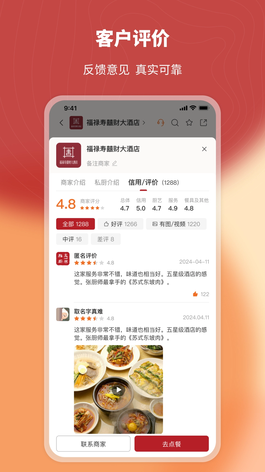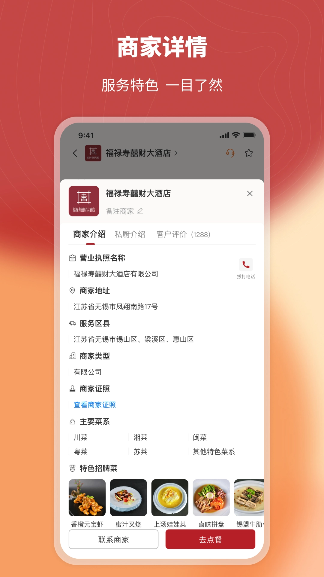 人们能够通过网络查看商户的相关情况,了解其服务范围、资质证明、主打菜品类型等方面的信息。