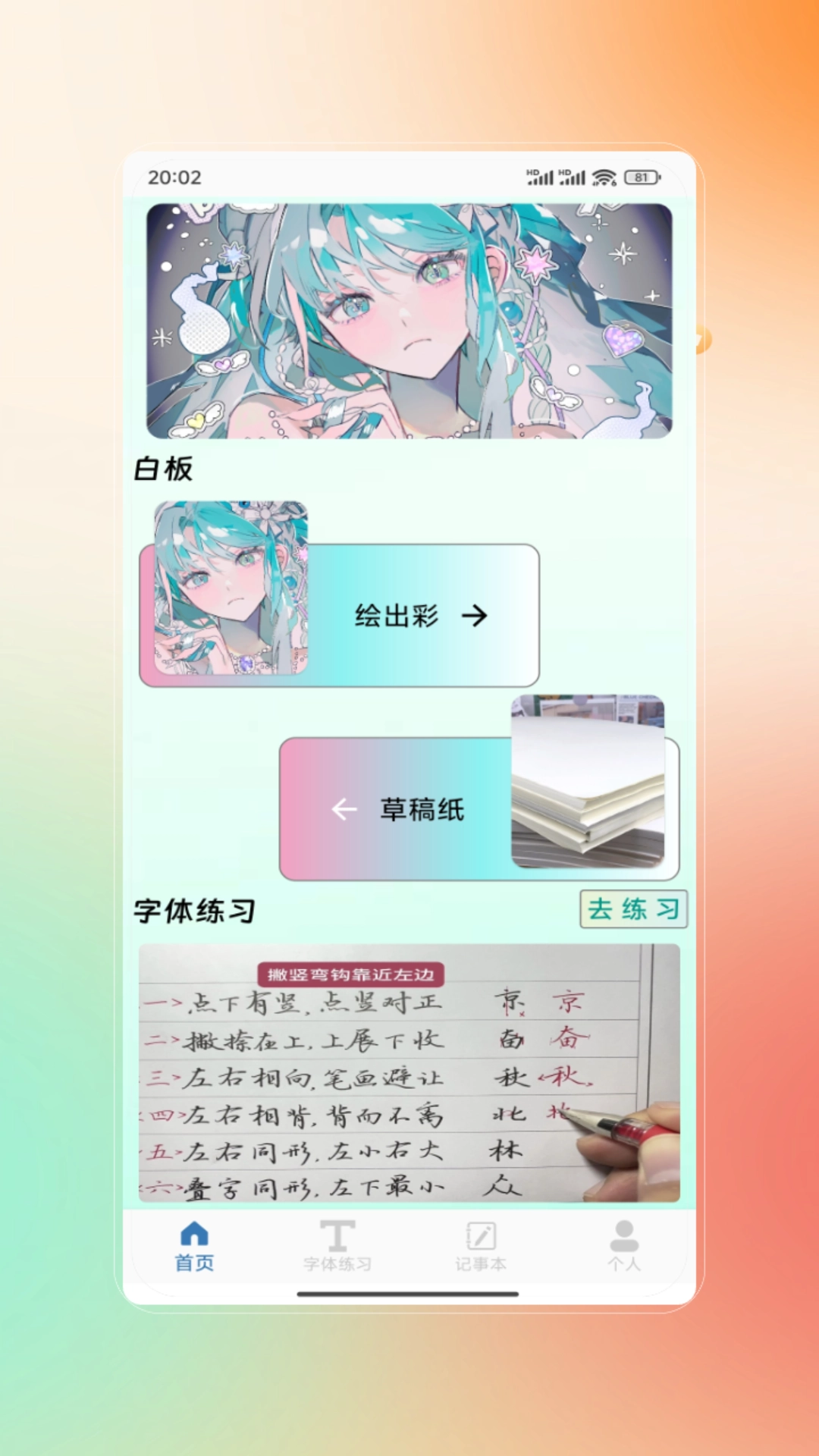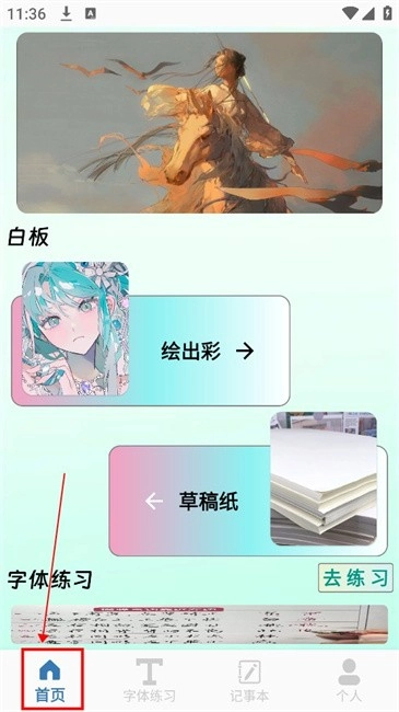 【首页】配备了白板与草稿纸功能,能让你在空白画布上自由书写或绘画。