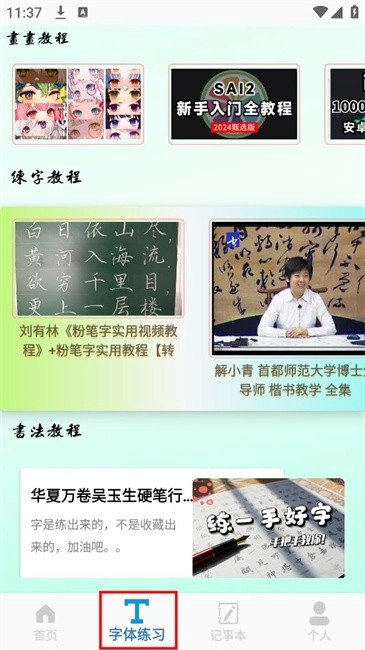 【字体练习】专区提供了临摹练习以及各种练习教程