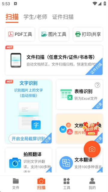 文字识别 文件扫描 证件 翻译
