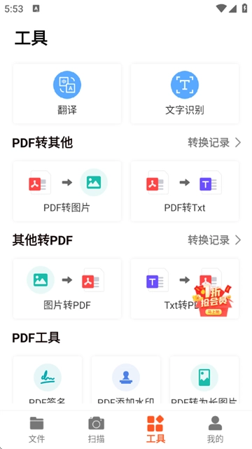 PDF扫描王免费版是珠海众森网络科技有限公司推出的功能强大的扫描软件,具备文件扫描、文字识别、表格识别、拍照翻译等特色功能,用户能一键把纸质文件转换成高清PDF或Word,还可自动矫正歪斜、去除阴影,支持OCR文字识别和多页合并。青睐这款软件的朋友,欢迎使用!