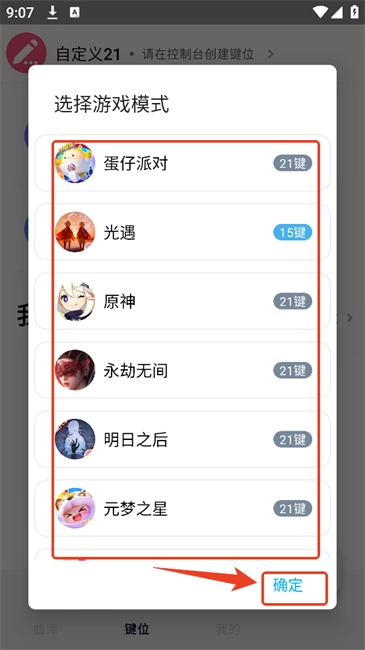 找到目标游戏后,点击确认按钮,接着在键位配置选项中挑选符合您操作习惯的布局样式。