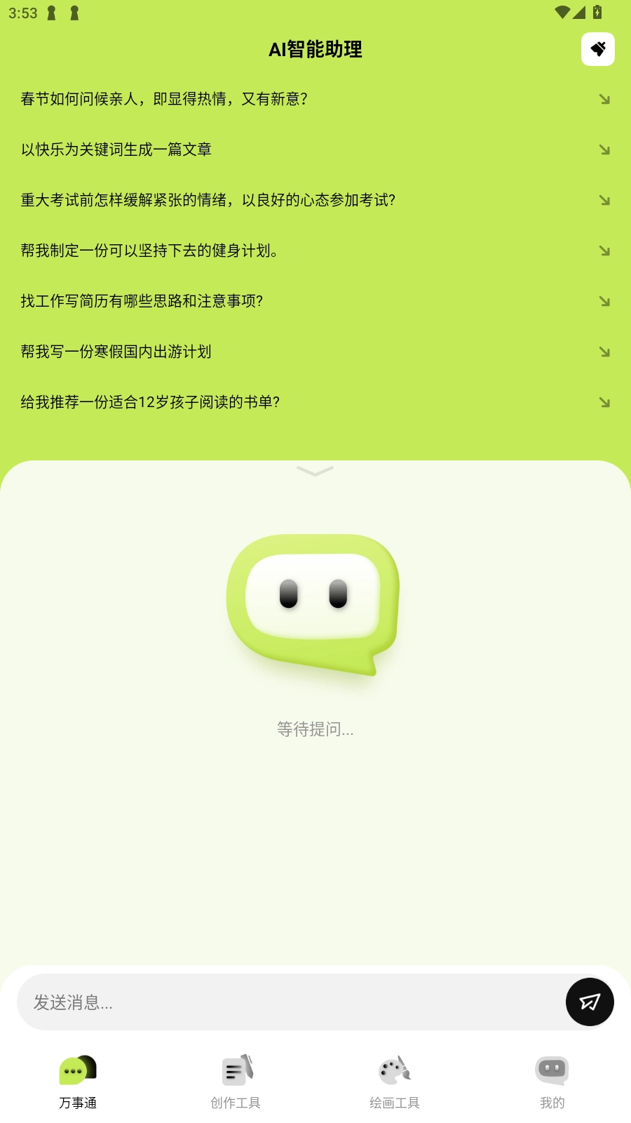 在主页点击对话输入问题