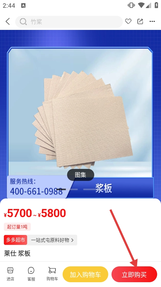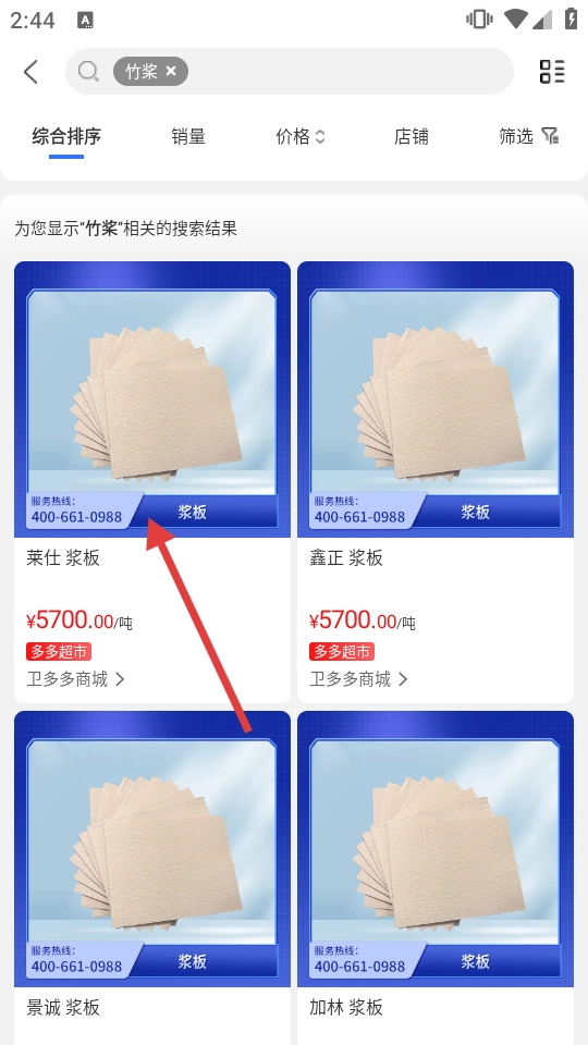 3、于商品列表页面,选中【莱仕浆板】,随后进入商品详情页面。