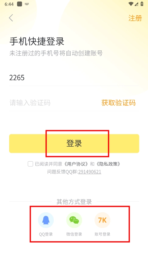 平台支持手机号 + 验证码的快捷登录方式,同时也提供 QQ、微信以及 7k 账密登录途径。在此建议大家优先选择手机号登录,原因在于即使用 QQ 或微信登录,最终也还是需要绑定手机号。