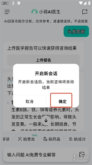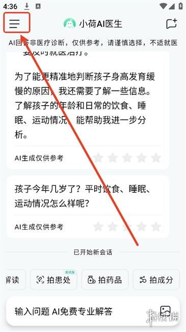 3、在界面的右上角,设有“新建会话”按钮,用户借助该按钮,能便捷地随时开启新的健康咨询。