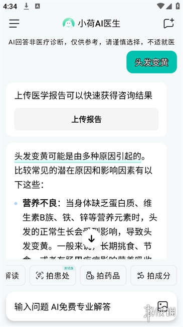 3、系统具备专业的报告解读功能,支持上传各类医学检查报告以及患处照片,AI会为您生成专业的初步评估报告。