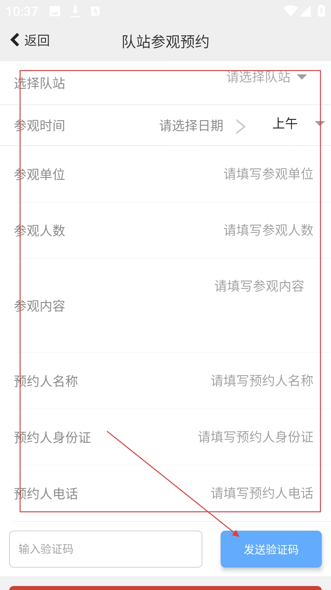 3、于预约页面填好预约信息之后,点击【发送验证码】按钮来获取验证码。