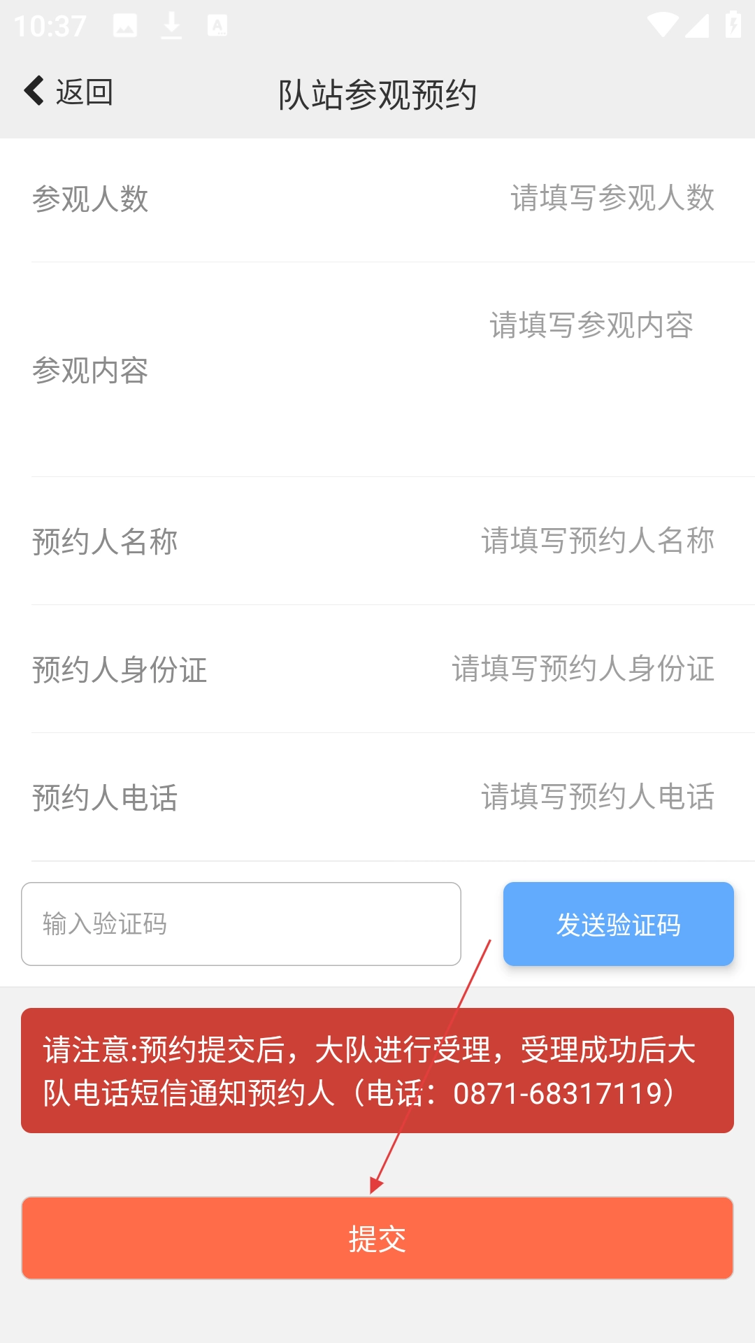 4、于预约页面输入验证码,接着点击【提交】按钮,完成预约提交操作即可。