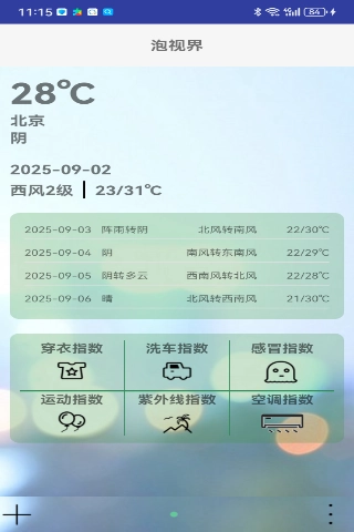 泡视界以简约设计为核心,聚焦天气查询服务,剔除多余功能,致力于为用户打造流畅便捷的使用感受。在气象数据呈现上,该应用提供的信息详实多元,除了包含空气质量、气温变化、细颗粒物浓度等基础天气数据外,还增设了着装建议、紫外线强度、体感舒适度等实用生活参考指标,多维度覆盖用户日常各类场景的需求。