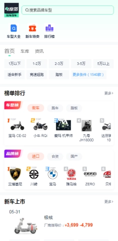 用户可查询各类电摩型号,获取车辆详细信息。