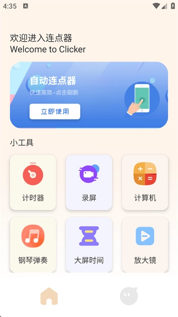 手机自动连点器免费版是一款实用的手机工具,适用于需要重复点击屏幕的场景,可替代人工操作,减轻手动疲劳。它不仅能用于游戏场景,还能应用于各类需要高频重复点击的日常操作,实用性强。此外,它还附带计时器、录屏、钢琴弹奏、大屏时间等其他手机工具,是你的专属手机工具箱。