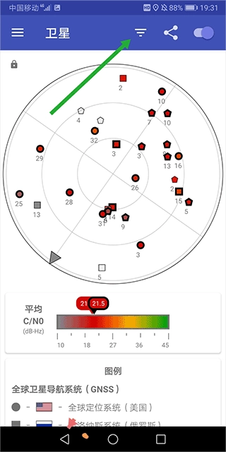 3、用户能够借助其顶部的筛选按钮来对北斗卫星进行筛选。