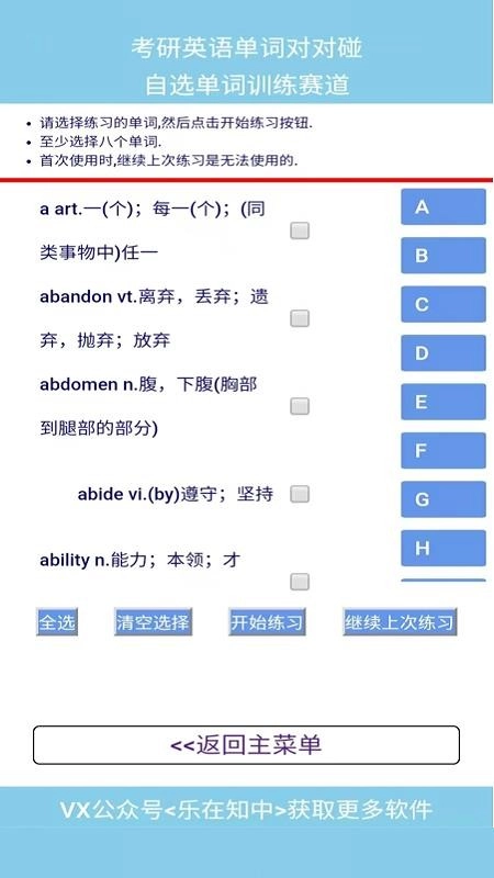 这款应用支持英语词汇的学习功能,用户可浏览条理清晰的词汇汇总列表,专注于考研英语单词的专业学习。