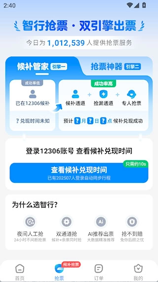 自动抢票功能支持提前预约下单,待车票开售时系统会自动进行秒杀出票操作。该功能不仅能够抢候补车票,还能抢余票,从而有效增加用户的购票机会。