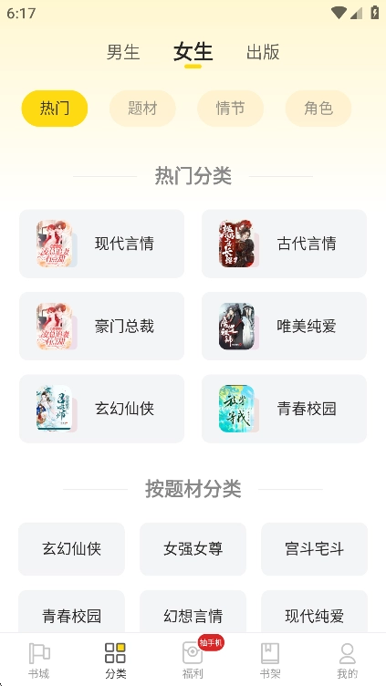 打开,用户们可以根据小说分类筛选出自己喜欢的小说