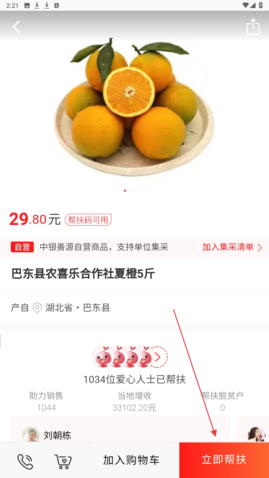 4、于商品详情页面,点击【立即帮扶】,即可参与帮扶并购买该商品。
