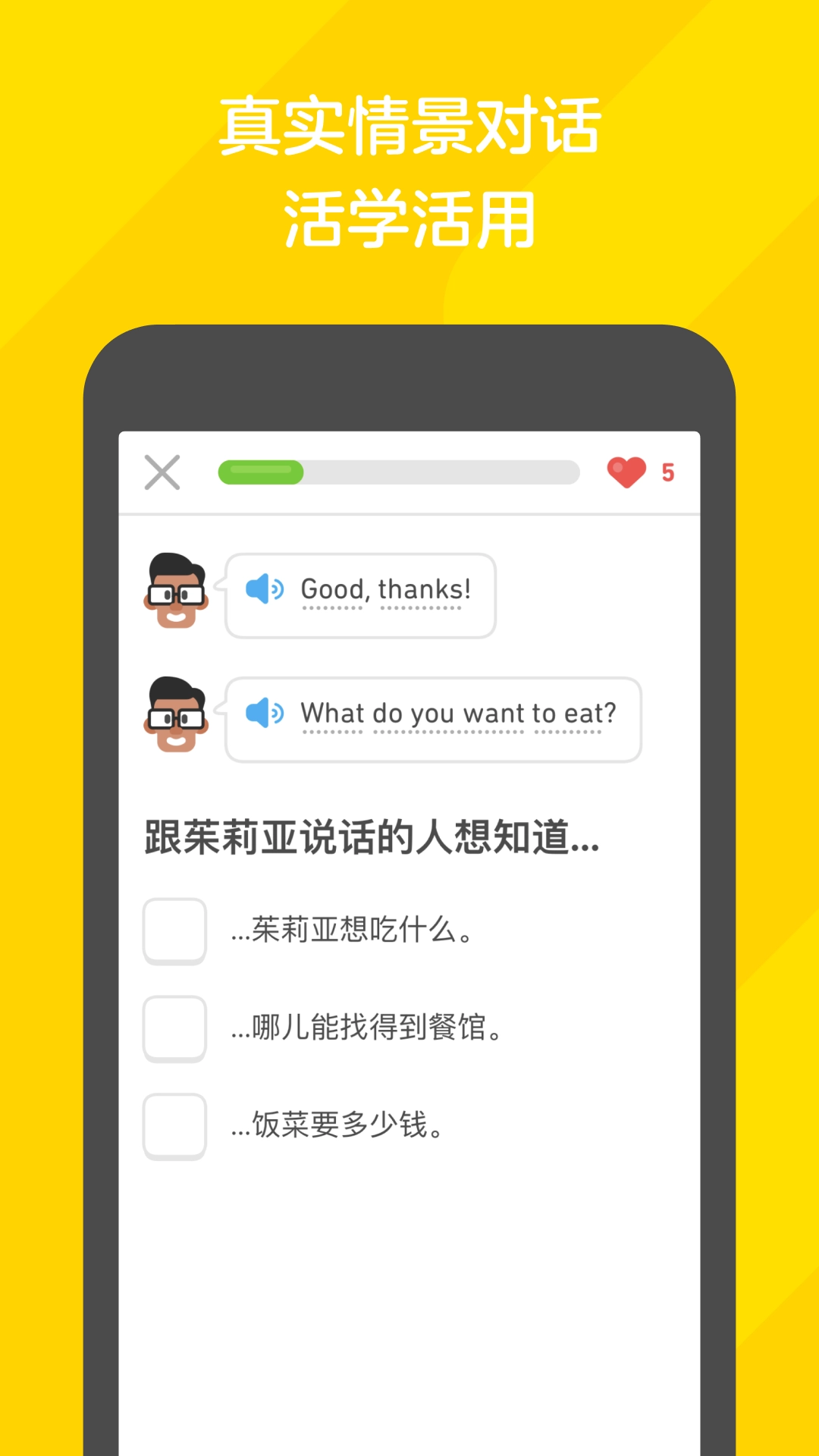 采用游戏化的方式开展学习,以生活中的不同场景作为独立单元,像掌握餐厅点餐这类实用技能,就能让学习者在听、说、读、写各个方面得到充分锻炼。