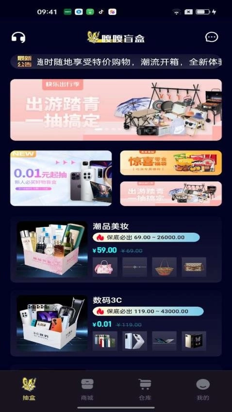 嘎嘎盲盒平台上有多种盲盒可供选择,涵盖数字藏品、实物商品等不同品类。每个盲盒内的物品类型和数量各有不同,用户能够依据自身需求挑选心仪的盲盒。