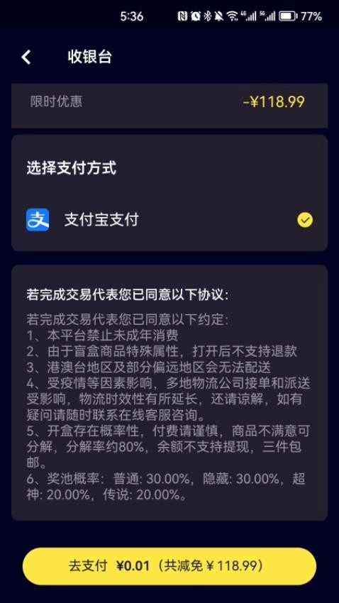 盲盒交易记录:用户可在个人账户内查看盲盒相关交易记录,涵盖购买、交换与拍卖等类型,便于用户掌握自身交易动态及收益情况。
