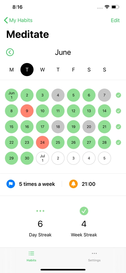Hapit能帮助用户轻松完成打卡操作,用户还可以在这里制定自己的生活计划。