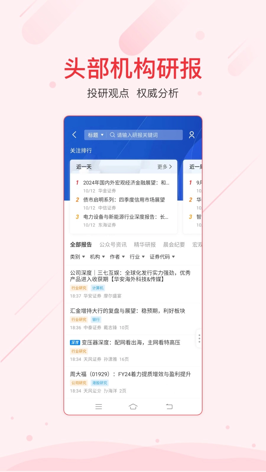 实时资讯推送服务:该软件支持全天24小时无间断地向用户推送公告、研究报告以及咨询数据等内容,助力用户能够及时了解并把握市场的最新动态。