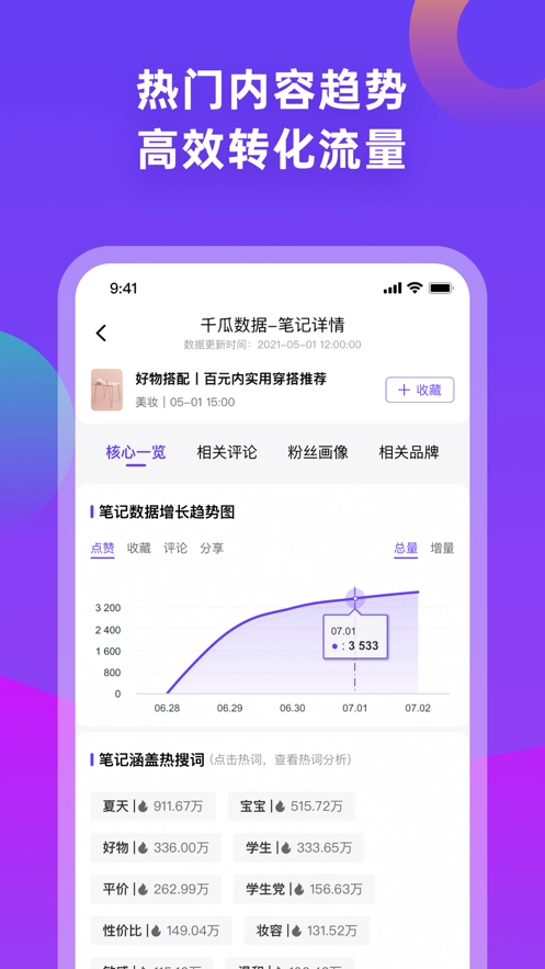可视化呈现:千瓜数据配备多样的图表与报告模板,助力用户直观查看并分析数据,进而提升工作效率。