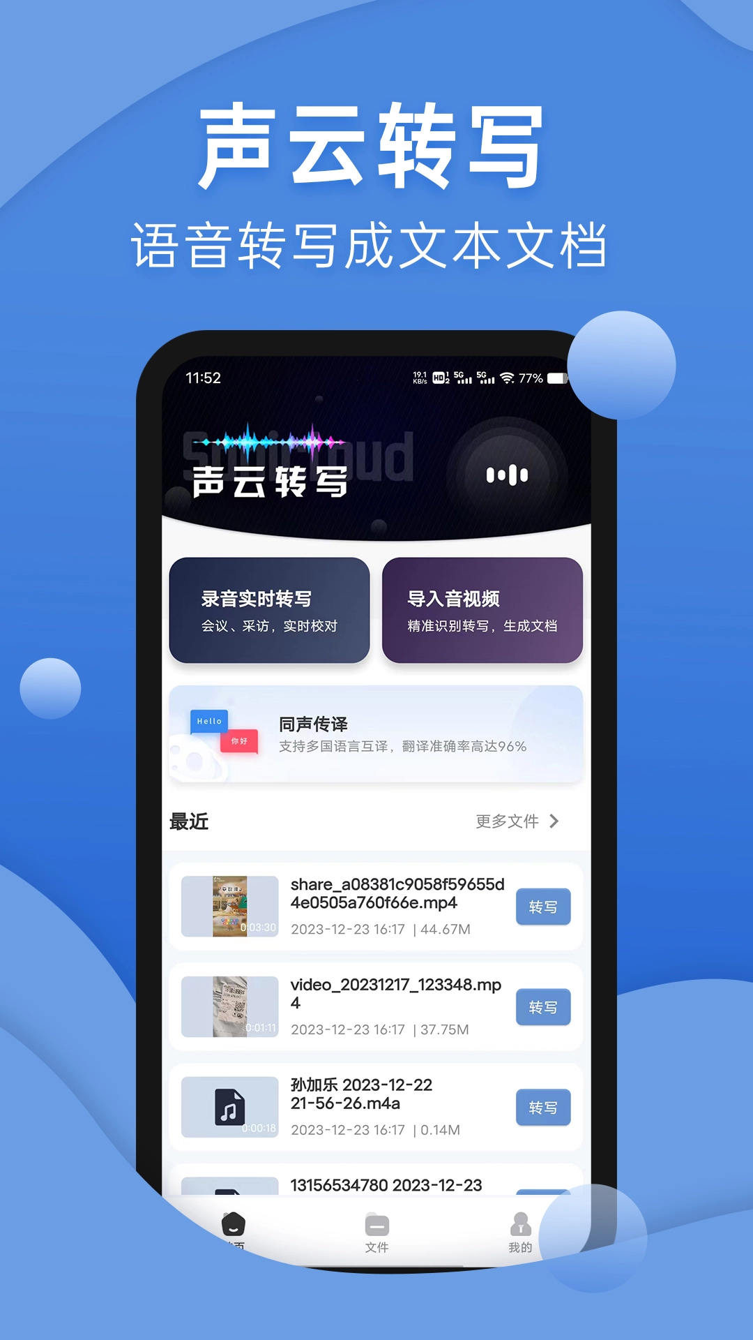 云端存储功能:支持为用户提供云端存储服务,便于用户将完成转换后的文字内容与录音文件保存至云端空间。
