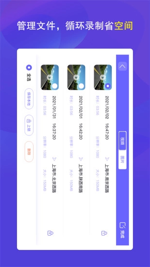 可以即时查看车载记录设备的当前画面,还能对设备的录制状态进行操控,以及触发拍摄功能。