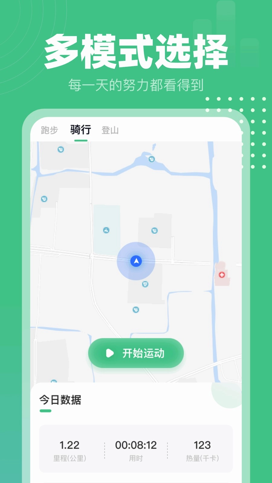 这款计步应用搭载高精度传感技术,可精准追踪用户的行走步数与里程数据,同步监测运动路径及能量消耗情况。同时,它了多样化的运动场景模式,能适配不同类型的运动需求。
