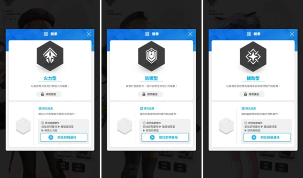 妮姬的职业主要有火力型、防御型和辅助型三类,每个角色还具备不同的武器、晶片代码属性,以及阶段I至III的爆裂技能。