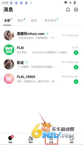 3. 高度DIY化:提供AI头像、背景和字体的自定义功能,让您轻松创造个性化的聊天空间。角色创建灵活度高,用户可直接使用模板或对其进行调整。并安装FLAI后,点击底部的“梦境”选项。
