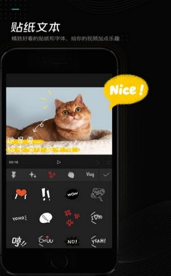 4、众多的精致好看的贴纸及文本丰富你的视频。