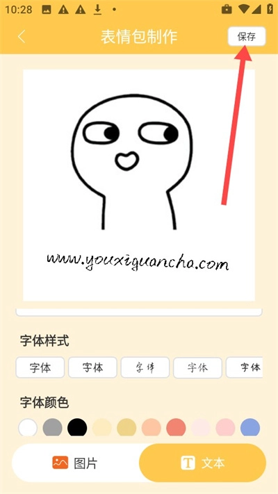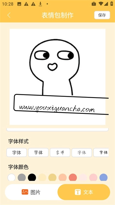 接着自主挑选表情包模板,设置字体样式、字体颜色等参数。