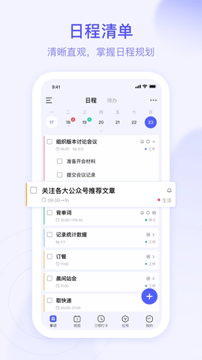 用户可以借助手机接收每日任务提醒,从而更方便地提前安排各项事务。