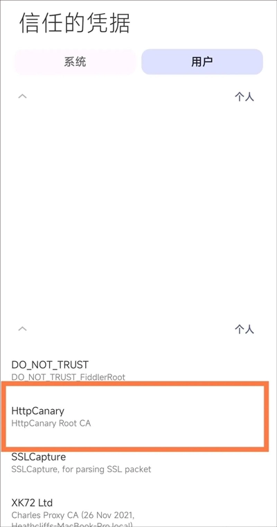 该证书文件存放在设备本地存储目录下的httpcanary文件夹内的cert子文件夹中。