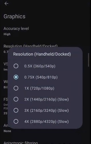 为提升运行性能,建议把分辨率调整至0.75倍;要是你使用的是配置较低的设备,那么选择0.5倍的分辨率会更为适配。