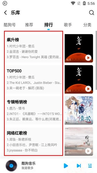 浏览当下热门的音乐排行榜,听众能够依据个人偏好的曲风来选择心仪的歌曲。