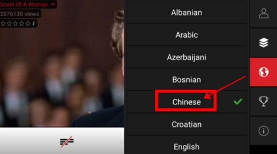 点击“地球”按钮,打开语言切换界面。