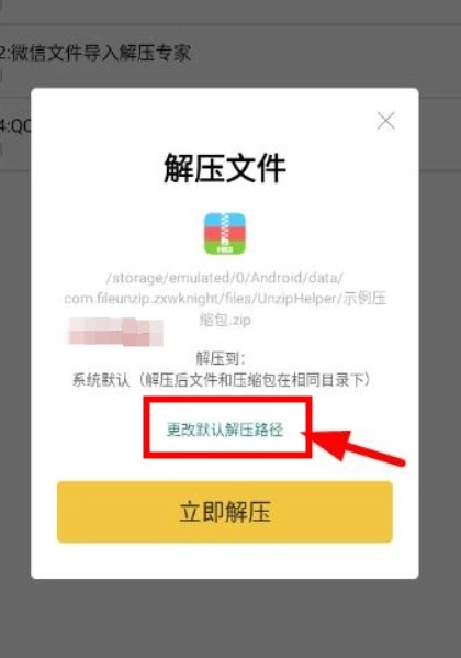 默认状态下,文件将被存储在和压缩包处于同一位置的文件夹中。