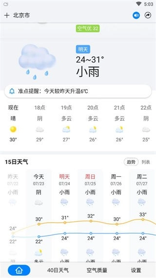 准时天气2025是一款实用的天气服务工具软件,用户通过它可以查询全国各地区的天气状况,还能查看未来15天的详细天气信息,从而更好地规划出行安排。