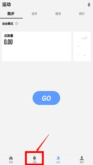 打开宜准跑步,点击界面下方的“设备”按钮。