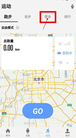 在运动页面里,点击“健身”选项,就能进入健身设置页面。