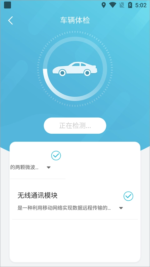 页面完成跳转后,点击“开始检测”按钮,系统便会对车辆的相关信息进行检测。